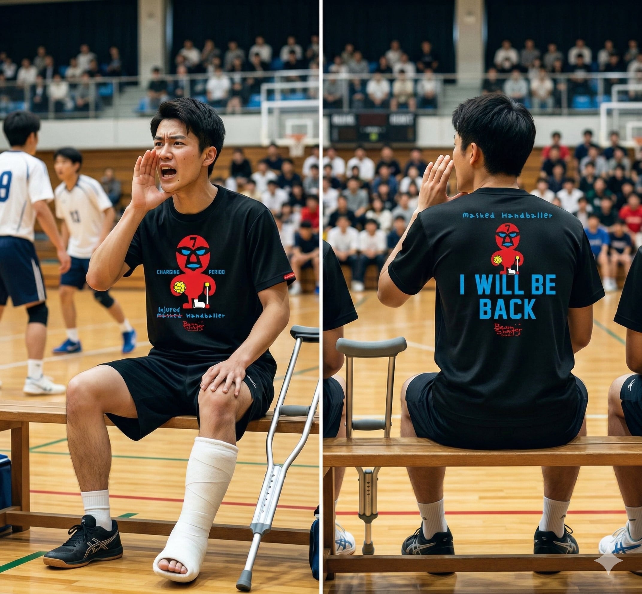 Beamshooterハンドボール Tシャツ BST09 ケガしちゃったハンドボーラー ブラック